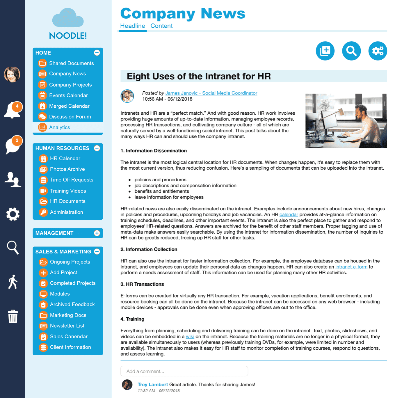 Promote wellness by adding at least one Widget on your intranet home page. A blog Widget makes sense, so staff can see the latest wellness news and information. If you have a discussion forum, I would also add a forum Widget on the home page, because that would further stimulate discussion.